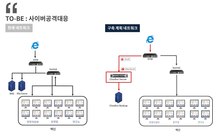 – 개인 PC에 저장하던 회사 자산을 중앙 서버에 저장,