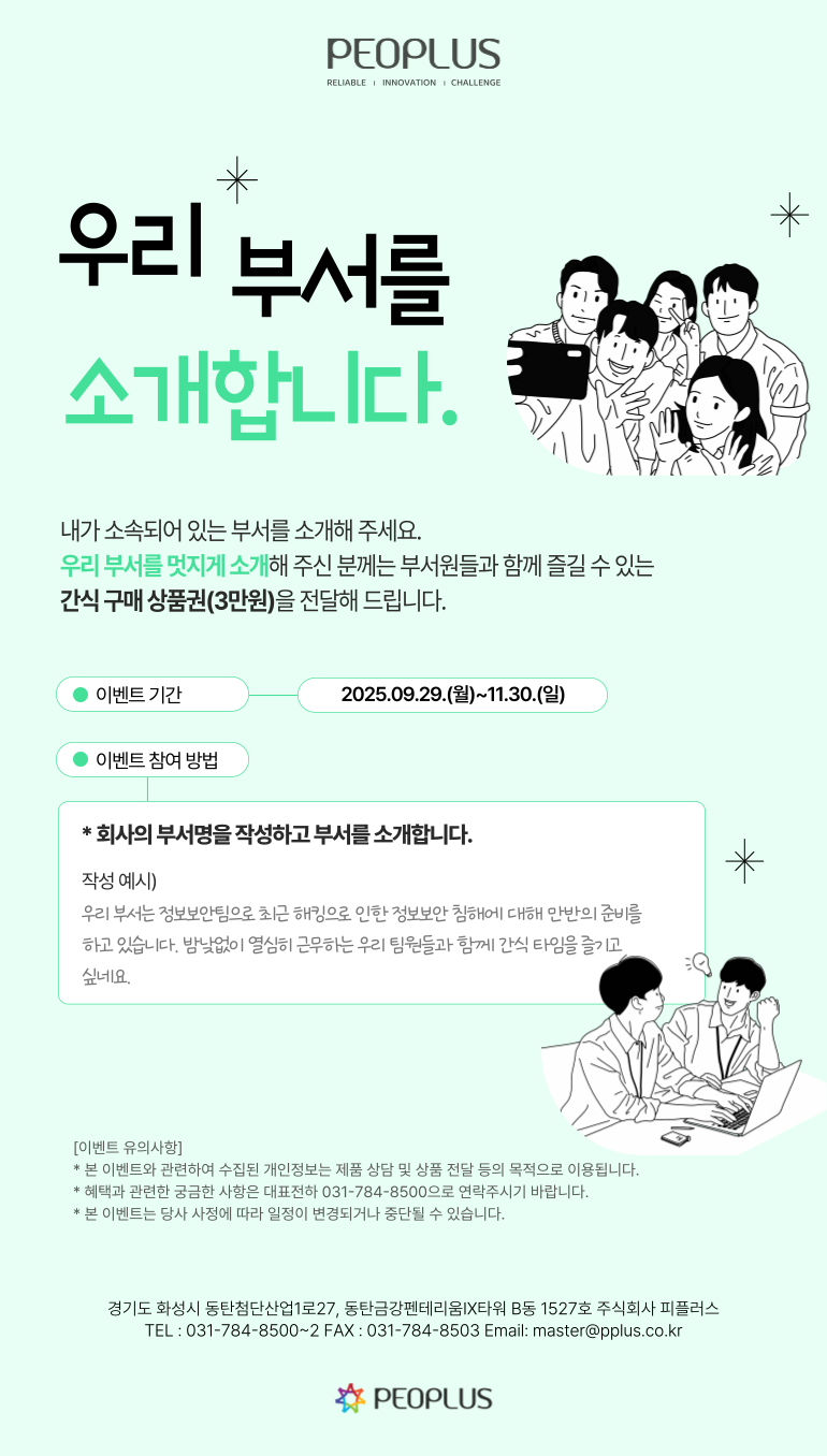 2025 우리 부서를 소개합니다. 위 내용에 동의합니다Thank you for your message. It has been sent.×There was an error trying to send your message. Please try again later.×Submit제품에 대해 궁금한 점이 있으신가요? 빠르고 정확한 답변을 도와드리겠습니다.상담 · 문의하기TEL : 031-784-8500~1 E-mail : sales@pplus.co.kr peoplus2025-09-29T11:15:11+09:009월 29th, 2025|