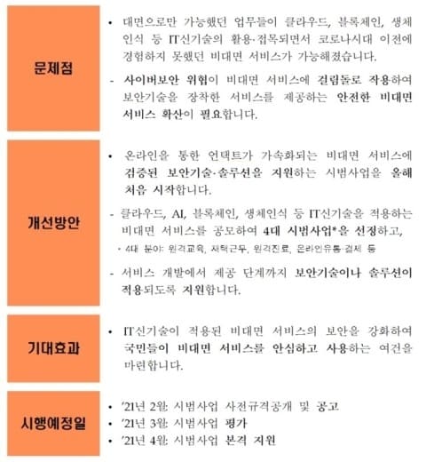 ▲신기술 적용 비대면 서비스 보안강화 사업 개요[자료=과기정통부]